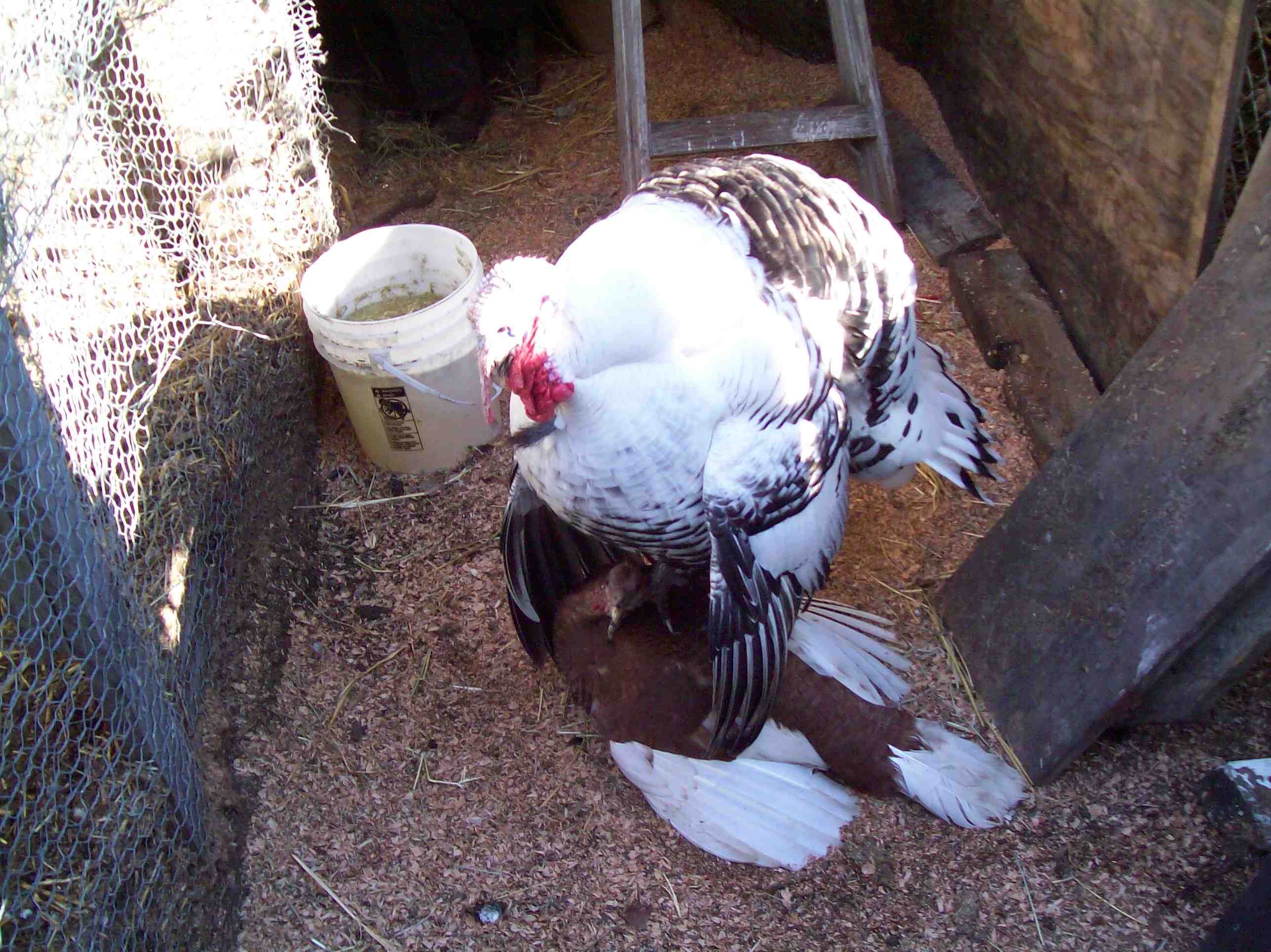 P.S. I will be braising my turkey Edith (pictured, preparing for turkey sex, on bottom), who was slaughtered as part of last year’s turkey class. She wasn’t able to hatch out any chicks, and grew to be an older bird, and will make a fine turkey soup. Thank you Edith!