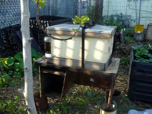 Amidst the tribulations I’ve been having this year–the city crack down on me being the most obvious–I lost my bee hive. I noticed fewer and fewer bees going in and out, and then I had to admit it: they were gone. I did a CSI-type investigation, and it looked like the queen was laying too many drones, or had died. Almost formed queen cells were all over the hive. Trouble was, it probably got too cold for them to hatch out a new queen and have her fly out for her nuptials. There was honey in the hive, but not much. There was also mold–such a wet year!